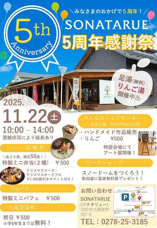 令和7年11月22日(土)にOPEN5周年記念イベントを開催致します。
