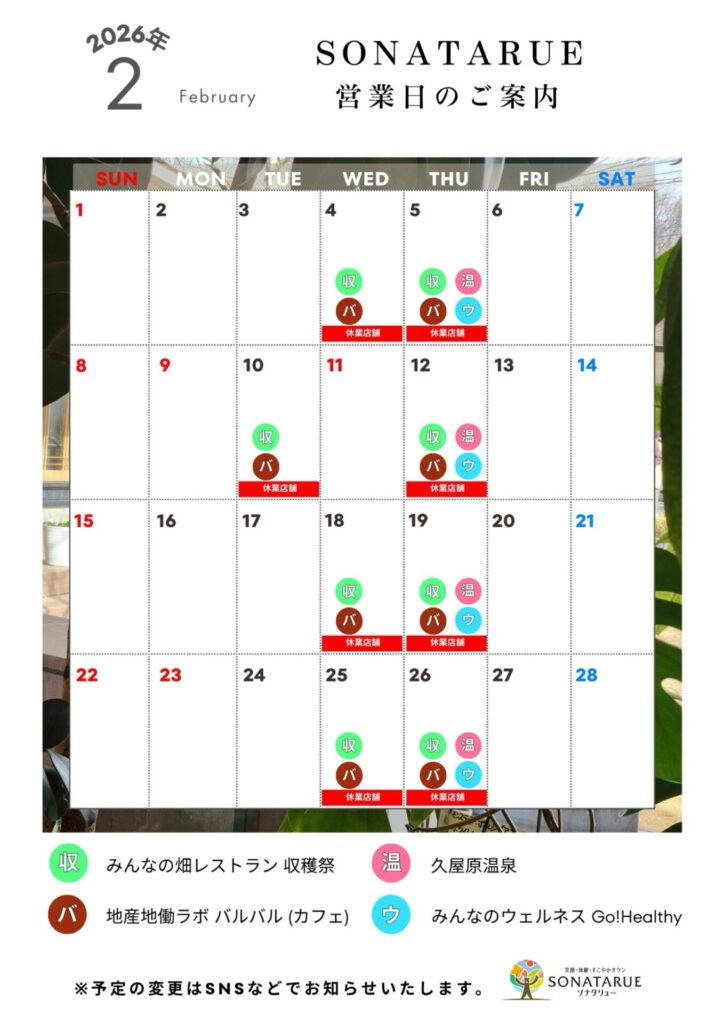 2月の営業日につきまして、こちらのカレンダーをご確認ください。