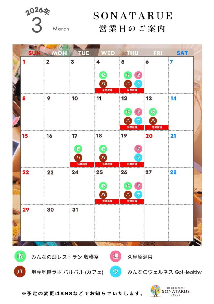 3月の営業日につきまして、こちらのカレンダーをご確認ください。
